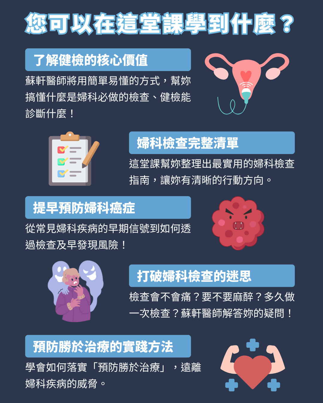 這堂課程專為重視健康的妳設計,讓我們一起從了解自己開始,守護妳的健康與美麗!
